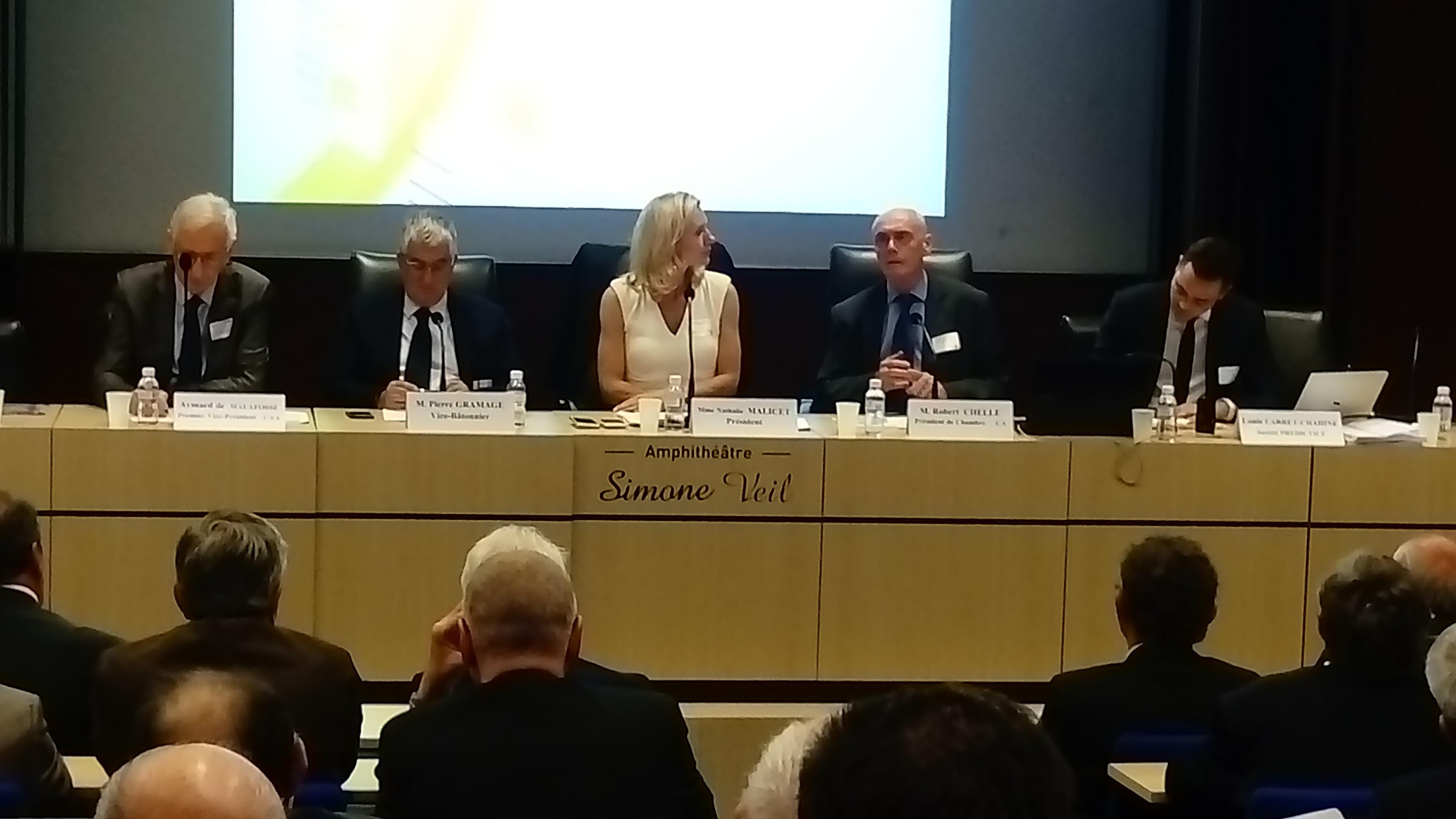 A 10h45, une quarantaine d’invités, dont de hauts magistrats de la Cour d’appel de Bordeaux, ont rejoint l’assemblée pour assister à l’Assemblée plénière.Sur le thème de »La justice prédictive », une table ronde animée par M Robert CHELLE, Président de chambre à la Cour d’appel, M Aymard de MALAFOSSE, Premier Vice-Président de la Cour administrative d’appel, M Louis LARRET-CHAHINE, directeur de la Société Prédictice et Me Pierre GRAMAGE, vice-bâtonnier, a passionné l’auditoire.